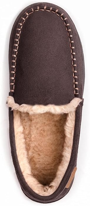 - A pair of classic moccasin slippers. Thick plush lining can wrapped your foot in comfy warmth on chilly days, also add a luxurious look and feel.