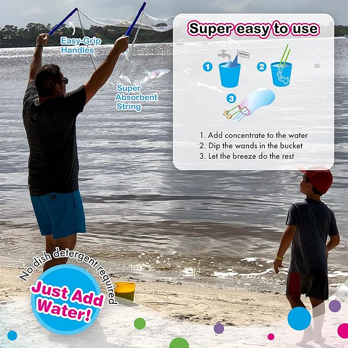 - OUTDOOR FAMILY FUN: A wonderful birthday activity or gift for boys & girls of all ages, parents can let kids play with the large bubble wands in the backyard, park, or beach. Teachers can use it for science class at school.