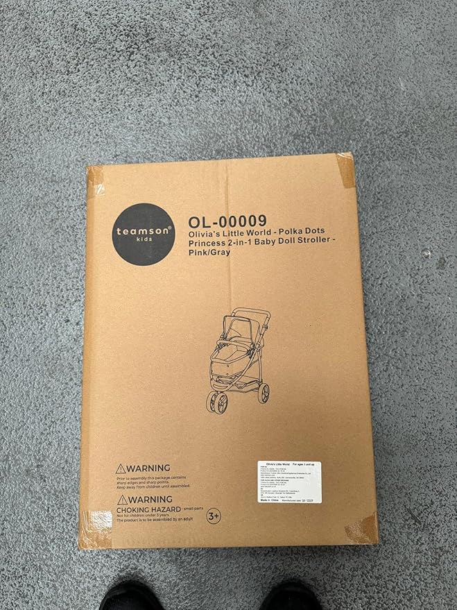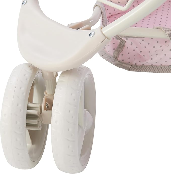 Olivia's Little World 2-in-1 Convertible Baby Doll Stroller with Retractable Canopy, All-Terrain Wheels, and Adjustable Handle, Cream and Pink with Gray Polka Dots