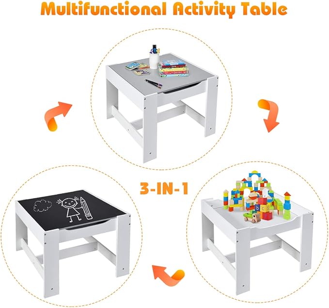 - Versatile and Multi-functional: Costzon kids table and chair set is an activity center that allows children to read, draw, write, paint, and play games all in one place. 2-in-1 tabletop provides two different functions. One side of the tabletop is blackboard for drawing and writing with chalk, the other side is for reading and playing. With this versatile and multi-functional set, children can easily switch between different activities and never get bored.