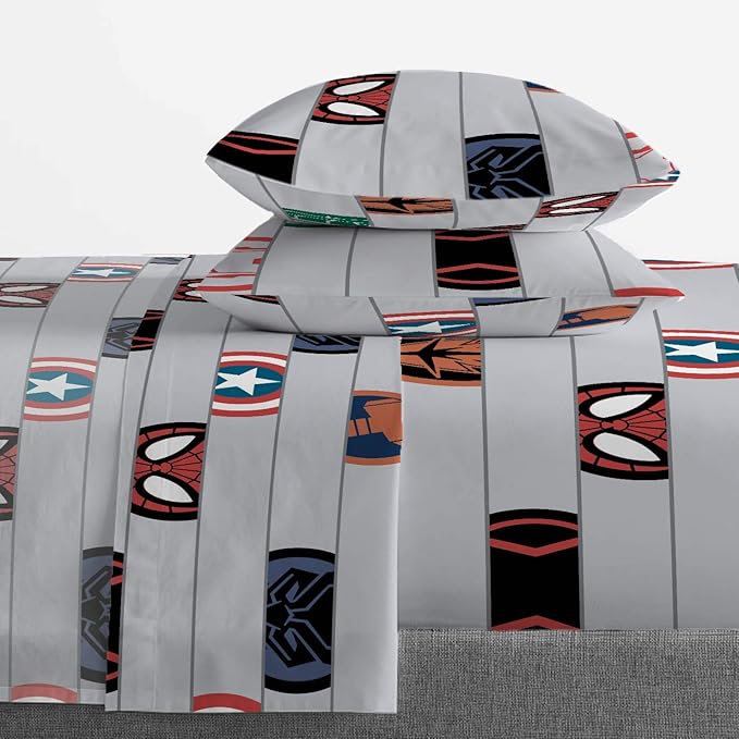 Jay Franco Marvel Avengers Emblems 7 Piece Full Bed Set - Includes Comforter & Sheet Set Bedding - Super Soft Fade Resistant Microfiber (Official Marvel Product)