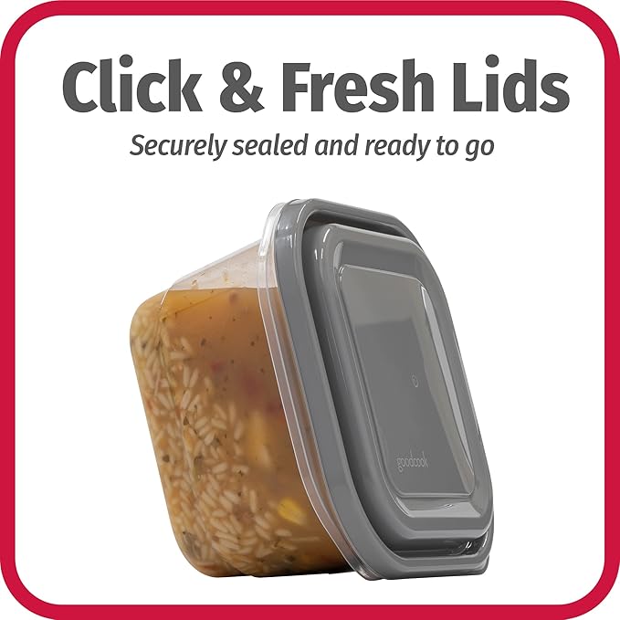- SECURE LIDS: Click & Fresh airtight lids make a clicking sound to let you know when they're sealed securely and ready for storage, and their domed shape won't compress your food