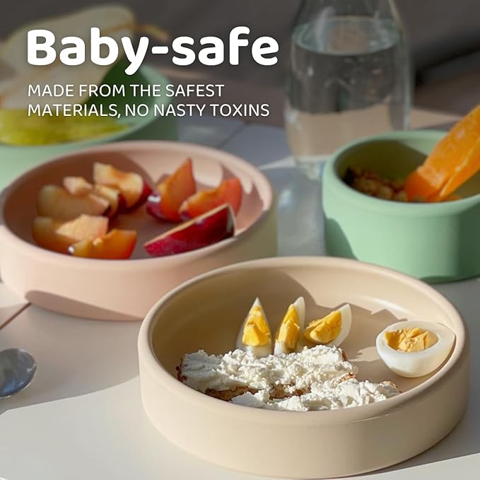 - Enjoy Peaceful Mealtimes - Our baby plates feature a weighted base for stability and prevent spills. The thoughtful design of these silicone baby plates promotes self-reliance and a sense of accomplishment during mealtime. Enjoy mess-free mealtimes with your little one!