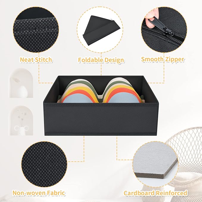 DIMJ Clothes Drawer Organizer, 12 Packs, Foldable Underwear Organizer for Baby Clothes, Tie, Bra, Sock (Black)