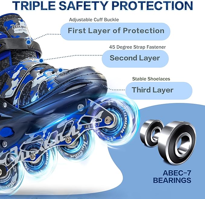 - 100% Satisfaction - Kuxuan inline skates come with a 100% Satisfaction. Reach out to us if there’s ever anything you need. We are dedicated to address any product/service issues and is committed to delivering a 5 star experience for all buyers.