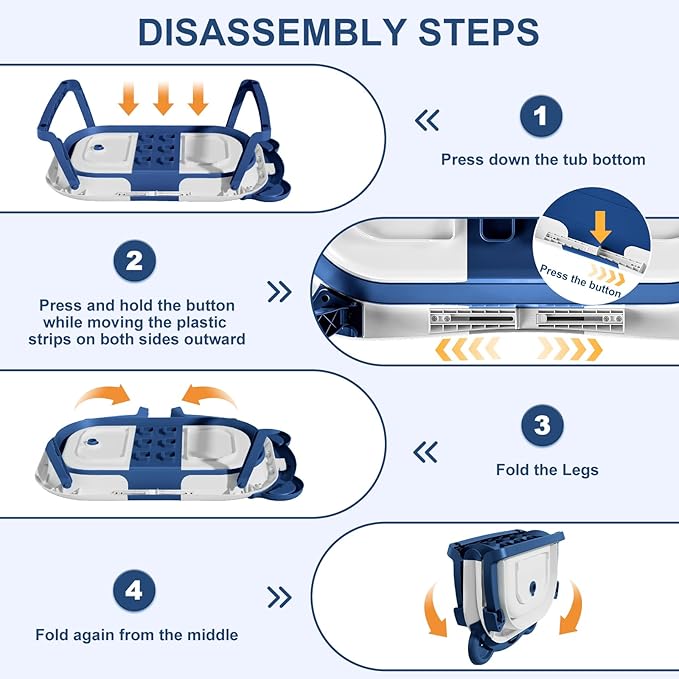 - 【Double-Fold Collapsible Design】Our upgraded baby bath tub can be effortlessly folded in just two steps to a thickness of under 4 inches. It even folds in half, enabling convenient storage in any corner, making it a space-saving solution.