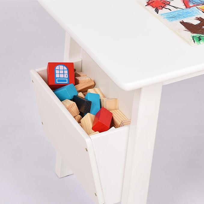 Kids Solid Wood Table and 2 Chair Set with Built-in Storage Cases Children's Storage Table and Chair Set for Toddlers Boys and Girls (Bianca White)
