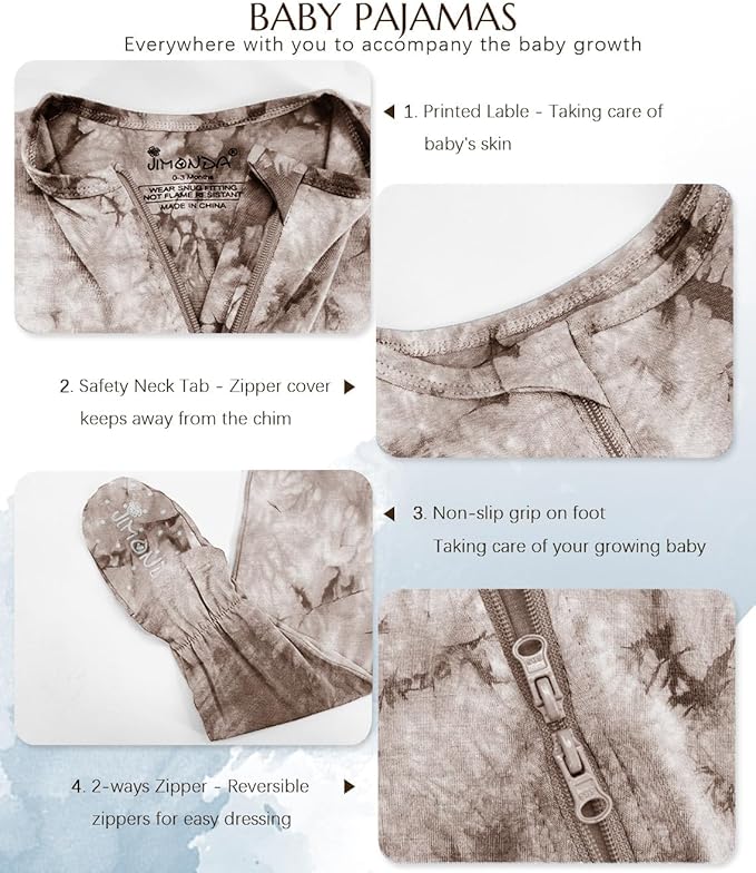 Jimonda Baby Girls Boys Footed Pajamas,Rayon From Bamboo,2 Way Zipper Long Sleeve Soft Sleeper Pjs,Infant Tie-dye Romper