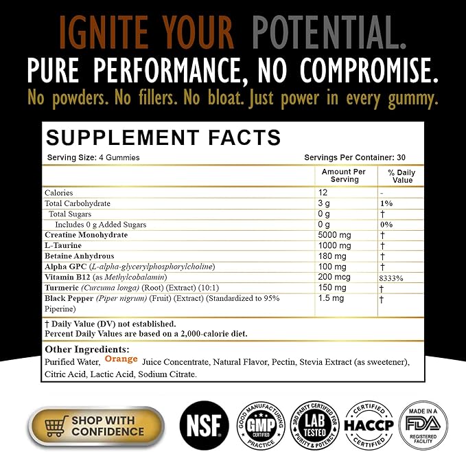 - SATISFACTION GUARANTEE WITH EACH GUMMY: We use only 100% pure, vegan-friendly, & non-GMO ingredients, free from unhealthy additives; DLNIA creatine monohydrate gummies are 3rd party lab tested & packaged in a GMP certified facility to ensure efficacy, your safety & satisfaction