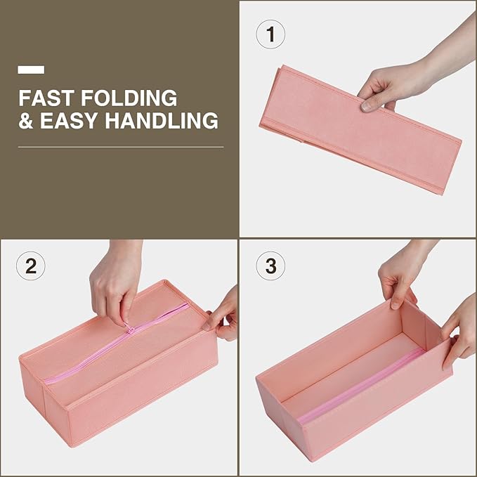 DIMJ Fabric Drawer Organizer Bins - 12 Pack Foldable Sock & Clothes Organizer - Pink