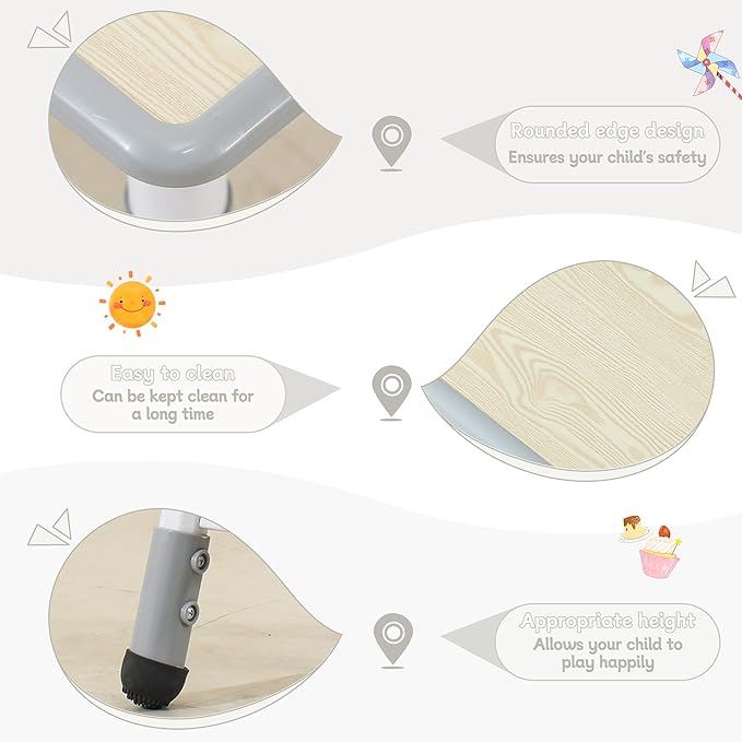 - High Safety: The toddler chairs have been specially treated to be smooth and rounded with no sharp edges, ensuring safety during playtime. The table can support up to 300 pounds, and the chair can support up to 180 pounds.