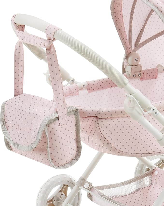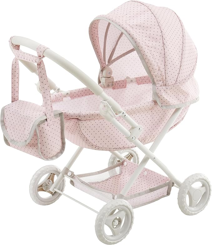Olivia's Little World Polka Dot Princess Baby Doll Pram Stroller with Retractable Canopy & Storage, Pink