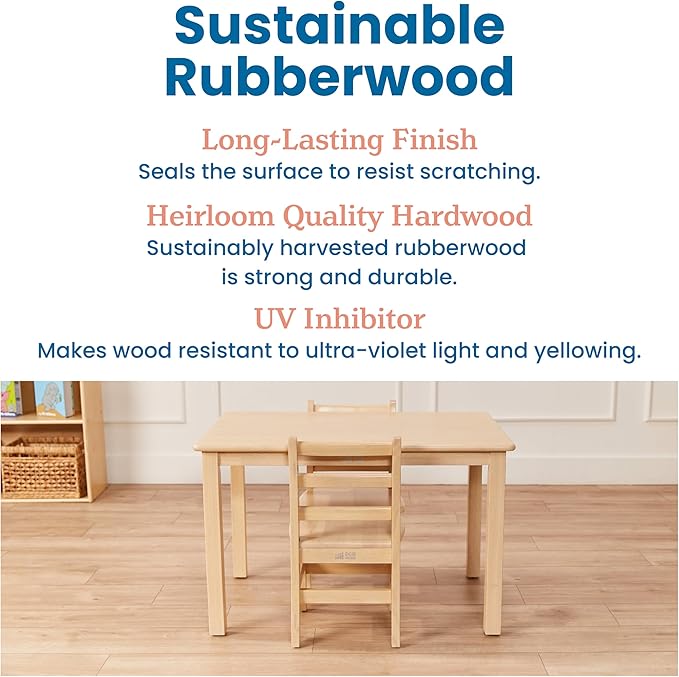 - Hardwood Table and Chairs: Keep kids comfortable during seated activities in the home or classroom with the wooden table and 2-pack of hardwood chairs to create a devoted learning area