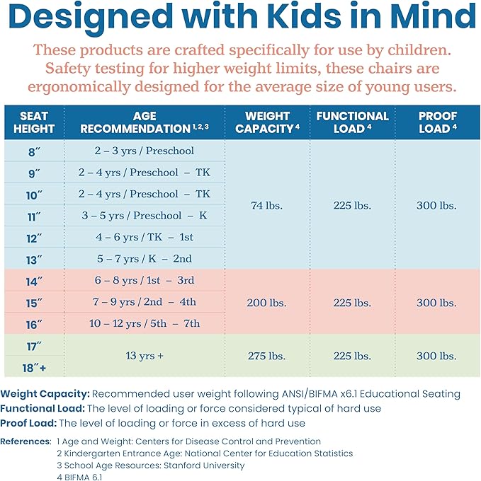 - Certified Safe: Children's furniture is GREENGUARD [GOLD] Certified for low VOCs, CPSIA compliant, meets the requirements of ANSI/BIFMA X6.1 Educational Seating and ANSI/BIFMA X5.5 Desk/Table Products