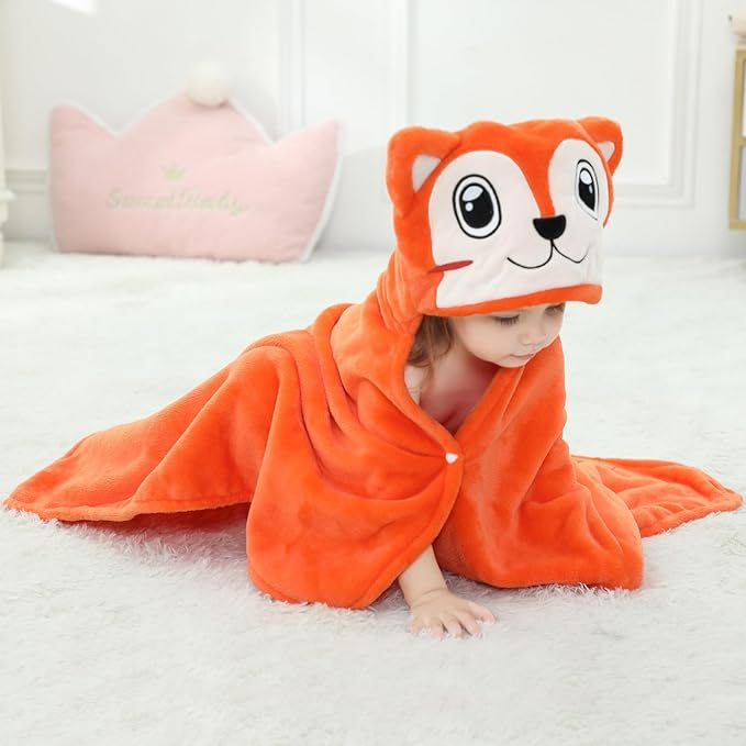 Wearable Blanket Hoodie for Kids Toddlers Hooded Towels Soft Cozy Flannel Wearable Throw Blanket Hoodie for Boys Girls Birthday Gifts (Fox 60 * 50)