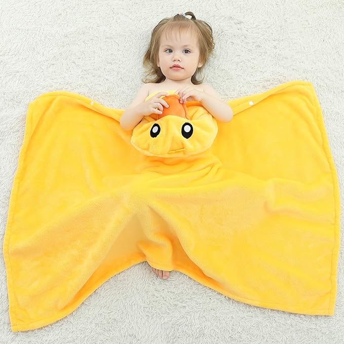 Baby Bath & Hooded Towels Kid Wearable Hoodie Blanket Baby Towels with Hood Soft Cozy Flannel Toddler Bath Towel Gifts for Boys Girls(Duck 50 * 40)