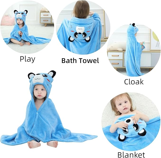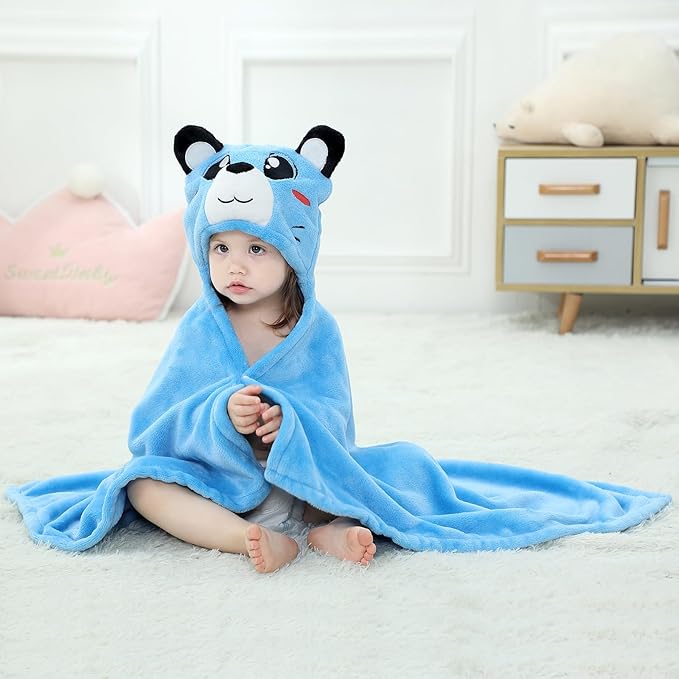Baby Bath & Hooded Towels Kid Wearable Hoodie Blanket Baby Towels with Hood Soft Cozy Flannel Toddler Bath Towel Gifts for Boys Girls(Blue Bear 50 * 40)