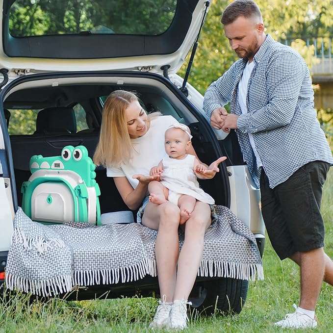 - 【Cute and Functional】The alligator-themed collapsible baby bathtub, complete with thermometer, hooded towel, and soft floating cushion, was certainly eye-catching and added a fun touch to bath time.