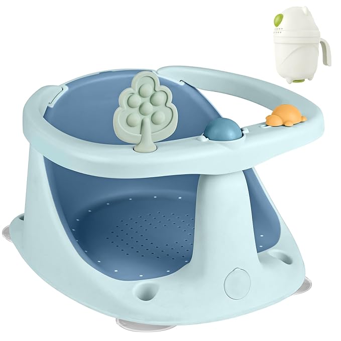 Baby Bath Seat for Babies 6 Months & Up - Bathtub Seats for Babies Sitting Up with Rinse Cup, Non-Slip, Comfortable, Infant Bath Essentials, Blue