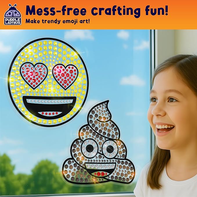 - EVERYTHING YOU NEED INCLUDED! Each kit comes with 2 Emoji SunGemmers window designs, color guides, over 1,000 gemstone stickers, and double-sided mounting tape - nothing else required to make these trendy sun catchers. All materials are high-quality and tested by a third-party facility for safety and peace of mind.