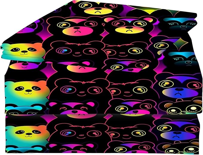 Lesser Panda Sheets Set Twin for Girls Boys Black Cartoon Lesser Panda Bedding Set for Kids Room Decor Cute Kids Bed Set with 1 Fitted Sheet, 1 Flat Sheet and 1 Pillowcase