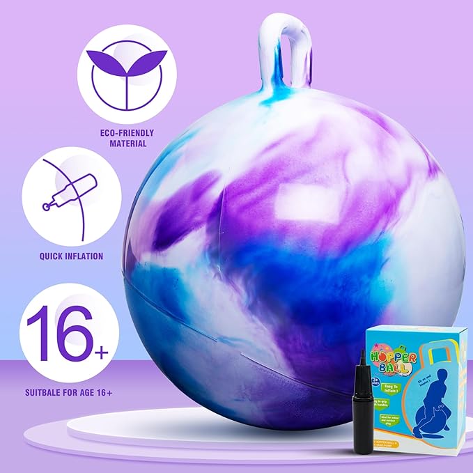 - Safety & Stability Assured: Built with ultra-thick, high-quality PVC and a sturdy handle, our hopper ball for adults with stands vigorous bouncing and fitness routines. Enjoy perfect stability whether hopping or sitting – wobble-free and safe fun for teens and adults!