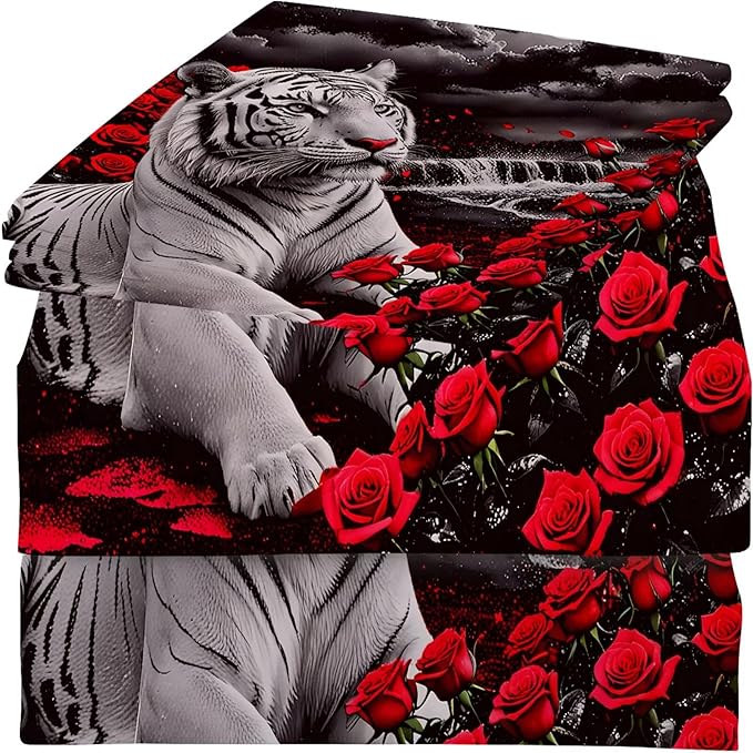 - Easy Care&Sturdy: This rose tiger sheet set is easy to care for and can be machine washed on the cold cycle, sun dried or tumble dried on a low temperature.