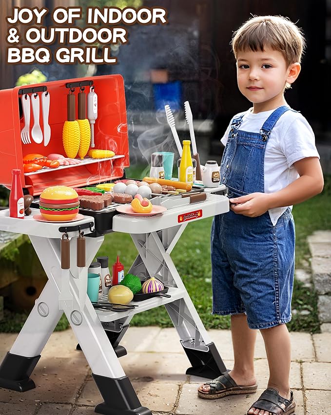 - 【X-Shaped Reinforced Legs & Safety】This toy grill for kids ages 4-8 features X-shaped reinforced legs with anti-slip pads for ultimate stability. Made of ABS plastic with smooth edges and no detachable small parts, it ensures a safe and durable cooking set for kids experience.