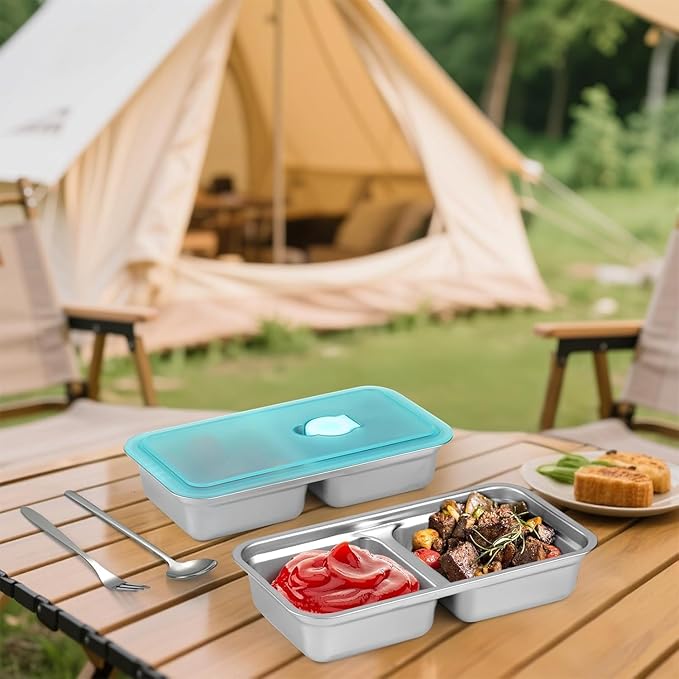 Grab and Go Snack Containers, Reusable Double Compartment Snack Containers-Stainless Steel Condiment Box with Lids for Outdoor Camping Food Storage (2)