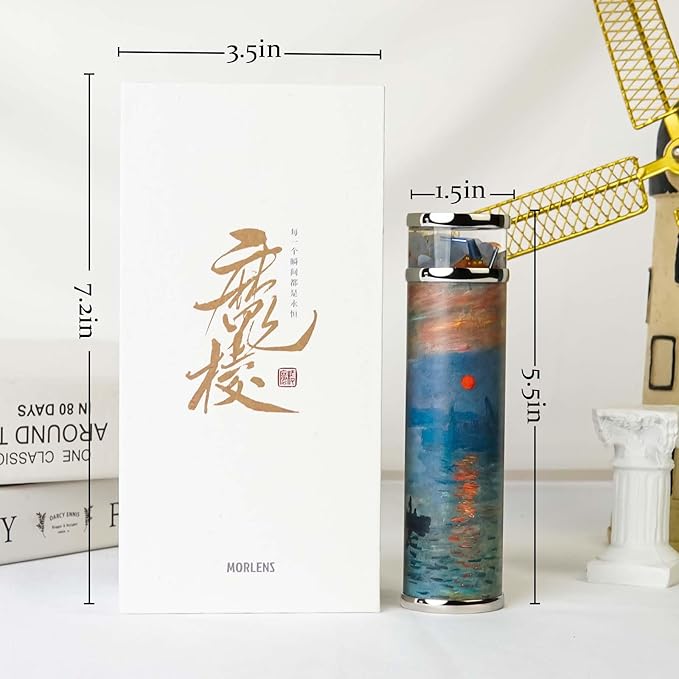 - Material: The kaleidoscope is handcrafted from high-quality aluminum alloy. The body of the tube is printed with high-definition Impression Sunrise painting. The core materials are adopted selected natural crystals and stones to present color scenes similar to the paintings.