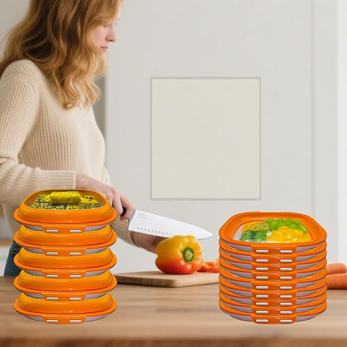 - SPACE-SAVING DESIGN: Our stackable containers for food maximize storage space in fridges, cabinets, and pantries. The sleek snack tray design nests perfectly, eliminating clutter and keeping your kitchen organized. Whether storing a veggie tray or leftover meals, these food prep containers maintain order while saving valuable space