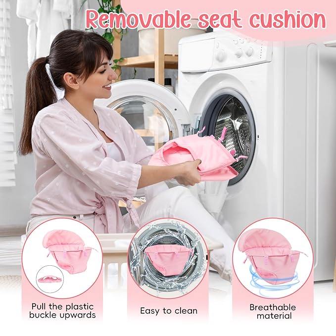 - [Removable seat cushion] : The seat cushion of the baby walker can be removed without the need for tools, so it can be cleaned and replaced . Meanwhile, the foot holes of the cushion are relatively small, which can fix the position of the child.