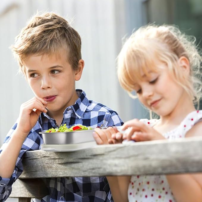 Stainless Steel Snack Containers for Kids Adults, 4 Pack 2 Compartment Metal Snack Containers Box with Lid, Reusable Food Storage Container, Leak Proof, Grab and Go