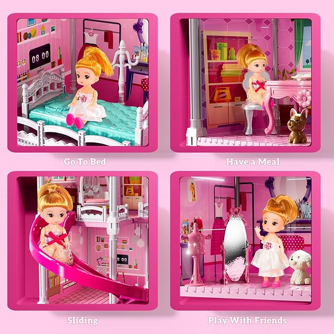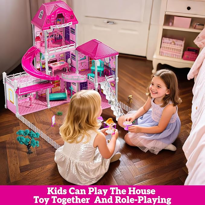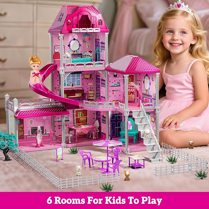 Girl House Toys for Girls 4-8, 3 Storey 6 Rooms Indoor Playset with Doll, Furniture and Accessories, Pretend Toddler Toy, Birthday Gifts for Girl Age 3-5 4-6 6-12