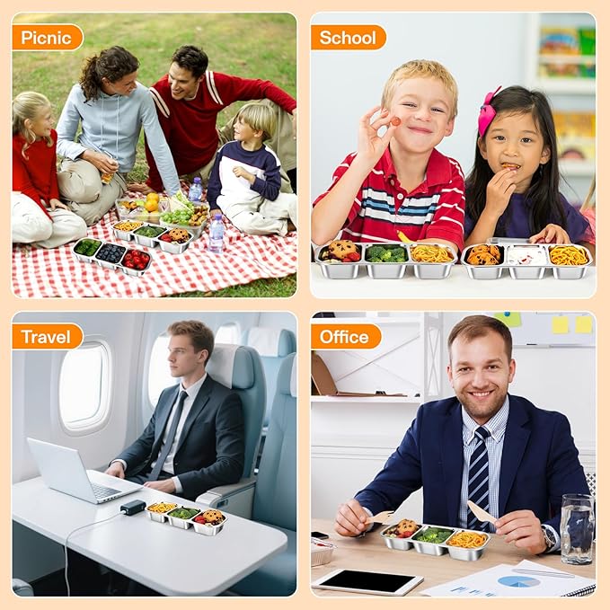 - 【Leakproof Snack Containers with Lids】Our stainless steel snack containers features a specially designed leak proof lid with a sealed silicone ring that seamlessly fits the metal container, ensuring that your snacks won't spill out when tilted or shaken. You can safely toss reusable snack containers with lids into your handbag. The design of 3 compartment snack containers keeps different foods separate and fresh.